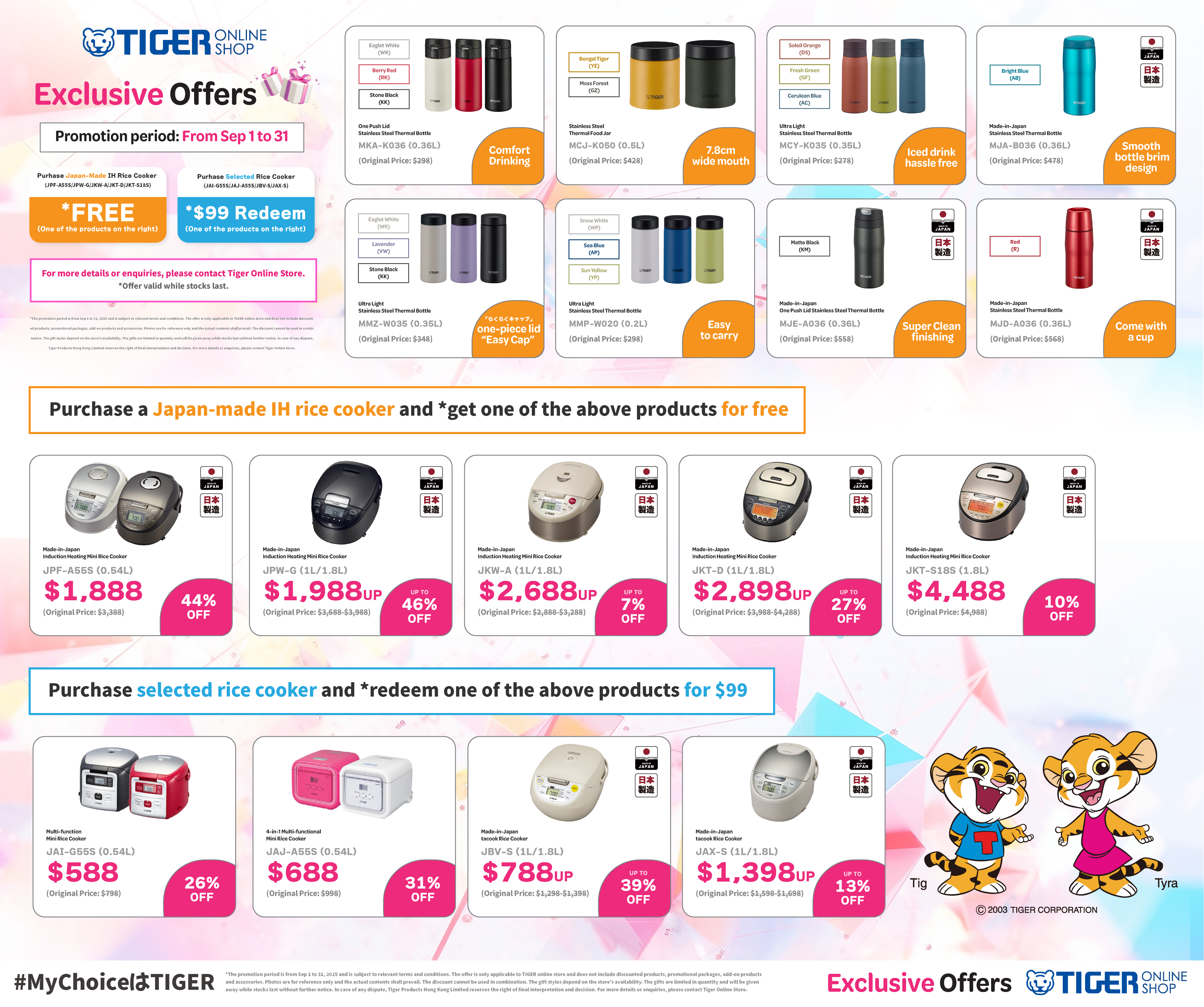 Get a free TIGER Rechargeable Small Fan upon any net purchase over $1000 on selected categories